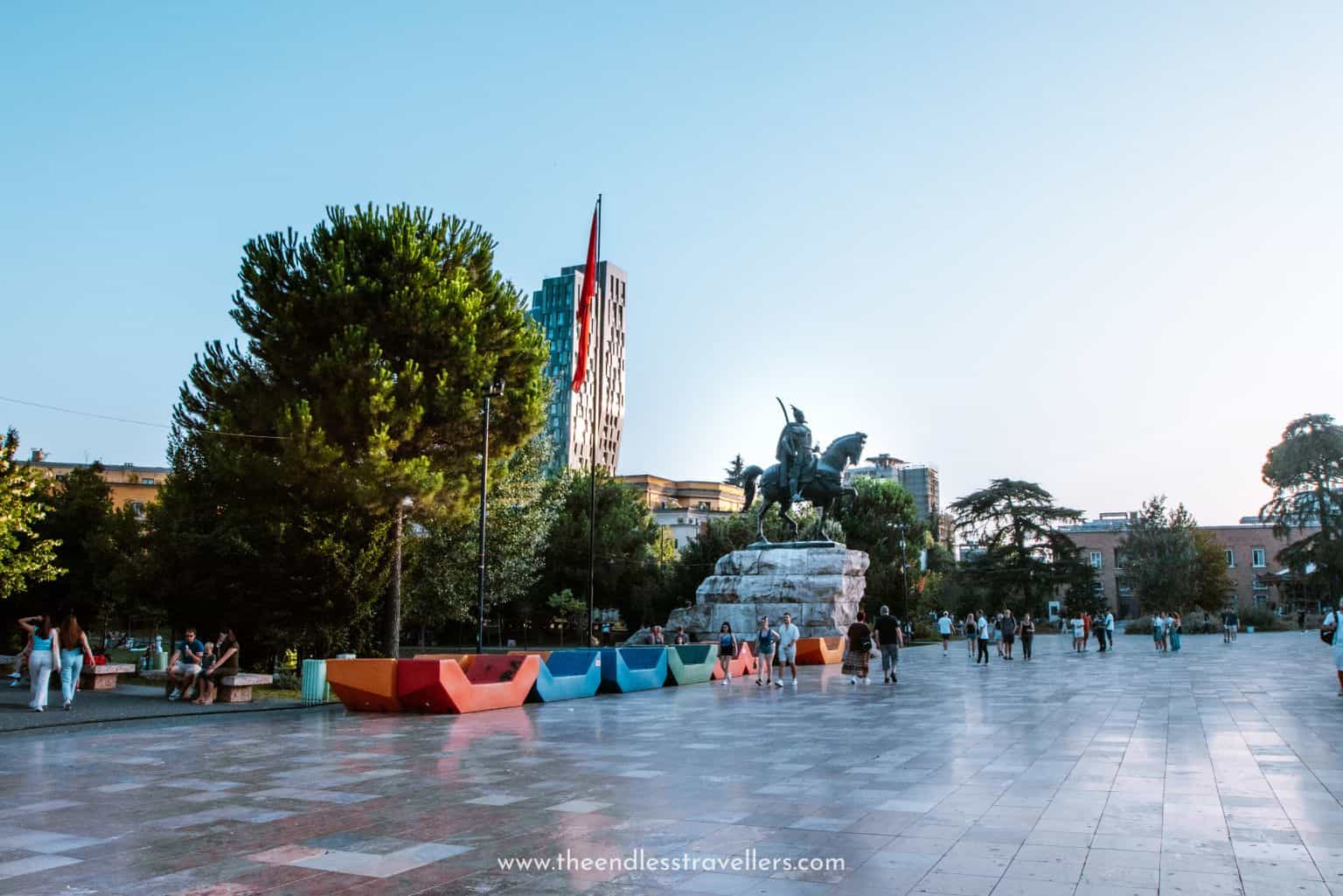 Start your day in the beating heart of the city at Skanderbeg Square. Skanderbeg Square is honestly huge, spanning 40,000 square metres. At the very centre is a huge monument of Albania’s national hero: Skanderbeg riding a horse.